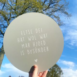 Met deze gave buiten muurcirkel fleur jij je tuin, veranda, balkon of oprit leuk op en breng je wat meer sfeer en dynamiek buiten! De muurcirkel is voorzien van een mooi ontwerp, namelijk een Friese tekst: Eltse dei hat wol wat, mar hjoed is bysûnder. Het is een echte eyecatcher voor in je tuin en staat ontzettend leuk in combinatie met ons andere verschillende muurcirkels. Combineer de kleine muurcirkels met de grote muurcirkels, teksten met patronen en hang ze in een leuke opstelling op of zet ze op een rijtje naast elkaar! Alles kan én alles mag.