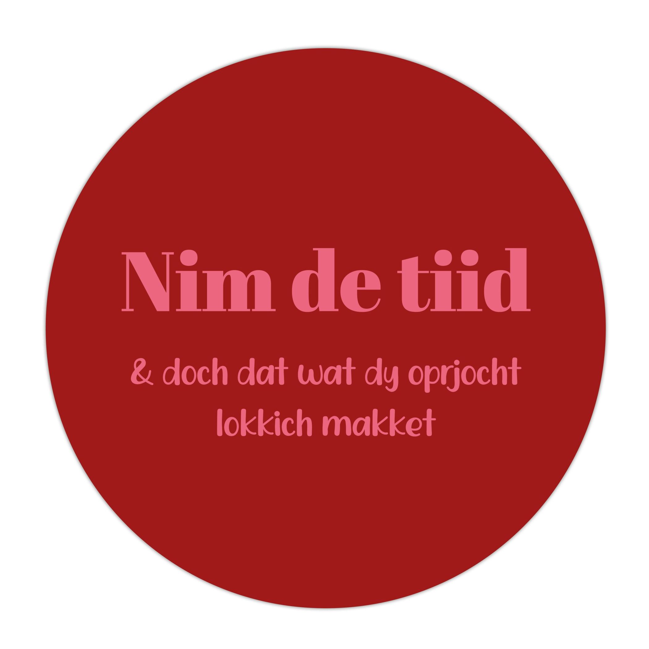 Met deze gave buiten muurcirkel fleur jij je tuin, veranda, balkon of oprit leuk op en breng je wat meer sfeer en dynamiek buiten! De muurcirkel is voorzien van een mooi ontwerp, namelijk de tekst: ‘Nim de tiid en doch dat wat dy oprjocht lokkich makket’ op rode achtergrond. Het is een echte eyecatcher voor in je tuin en staat ontzettend leuk in combinatie met ons andere verschillende muurcirkels. Combineer de kleine muurcirkels met de grote muurcirkels, teksten met patronen en hang ze in een leuke opstelling op of zet ze op een rijtje naast elkaar! Alles kan én alles mag.