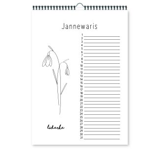 De originele Friese kalender van Krúskes is handig om alle verjaardagen, feestdagen en andere speciale datums in op te schrijven. Het is een Friese verjaardagskalender met op iedere pagina een illustratie van de geboortebloem van die maand. De kalender is zwart/wit gemaakt en daardoor past hij op alle plekken in je interieur!