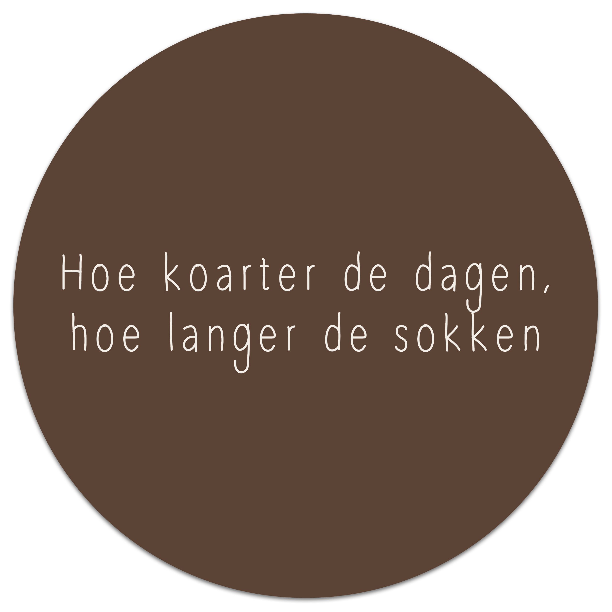 Met deze gave muurcirkel fleur jij je interieur leuk op en breng je wat meer dynamiek in huis! De muurcirkel is voorzien van een mooi ontwerp, namelijk de tekst: Hoe koarter de dagen, hoe langer de sokken. Deze staat leuk in de slaapkamer! Het is een echte eyecatcher voor in je huis en staat ontzettend leuk in combinatie met ons andere verschillende muurcirkels. Combineer de kleine muurcirkels met de grote muurcirkels, teksten met patronen en hang ze in een leuke opstelling op of zet ze op een rijtje naast elkaar! Alles kan én alles mag.